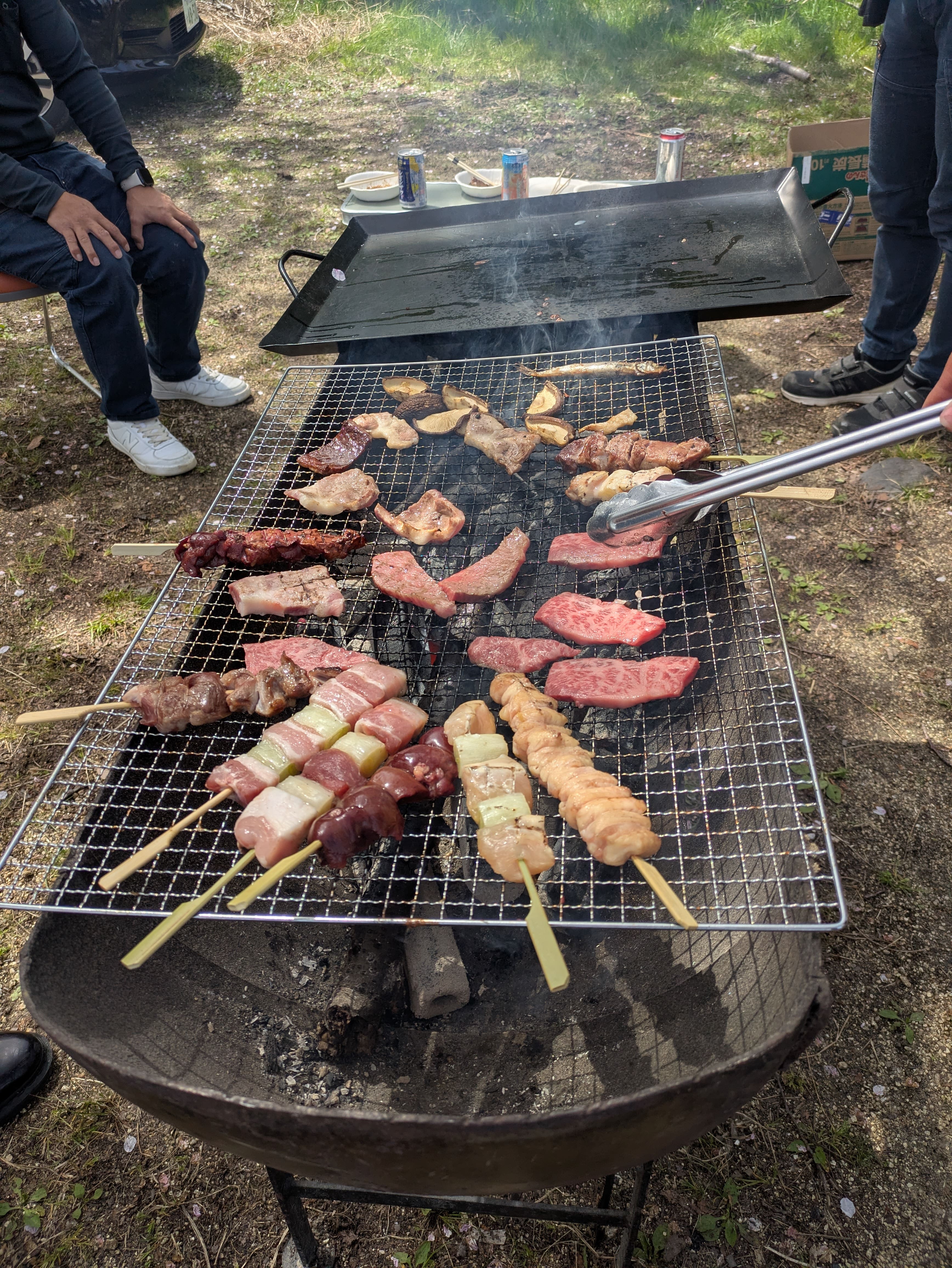 バーベキュー、焼きそば、香川といえばうどん! 食事もお酒も進みます。(ノンアルですが)