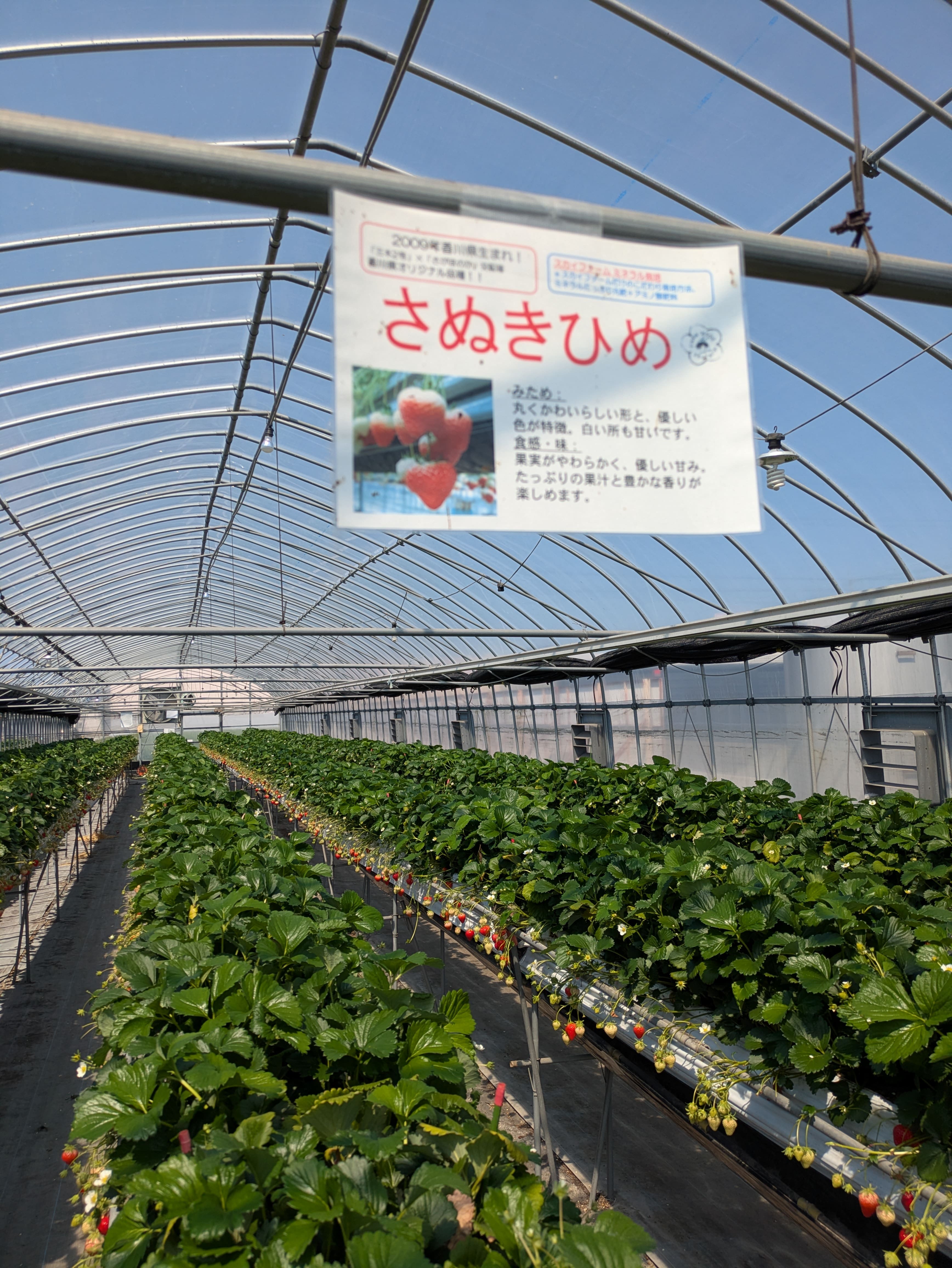 香川のブランドいちご:さぬきひめをはじめ、4~5種のいちごが食べ放題。