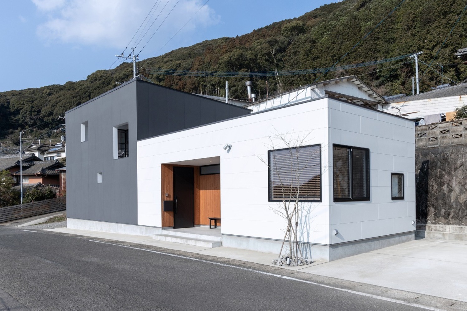 長い縁側と天窓のある家